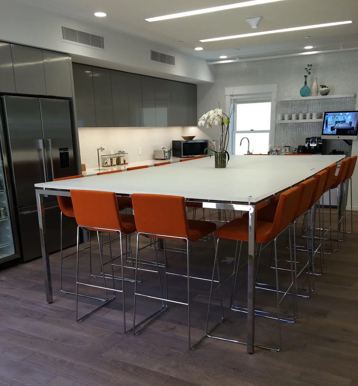 We keep all of our architectural hardware such as drawer pulls, grommets, rings, sleeves, trash rings, and standoffs, on the shelf and ready to ship when your order is placed. We also stock our tube legs big and small. Even some of our pedestal bases can ship in less than a week.