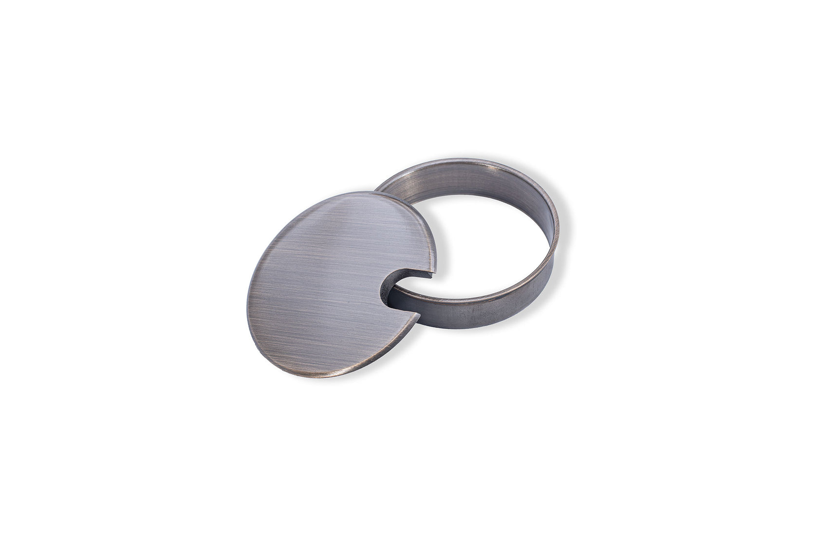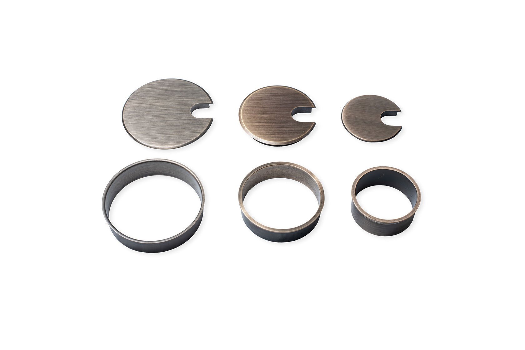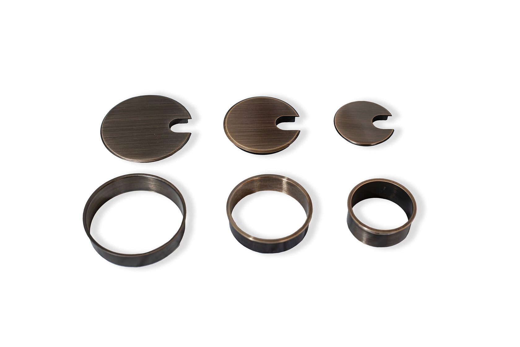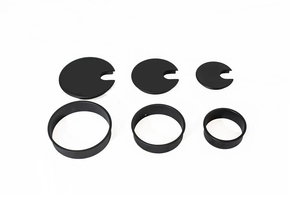 THIS GROMMET SITS ABOVE YOUR DESK-TOP SURFACE WITH A SOFT CHAMFERED 1/8” EDGE. MADE TO FIT PERFECTLY WITH OUR RDR-DECORITIVE RING, OR AS A STAND-ALONE GROMMET. Our Decorative Grommets and Matching Rings are finished to perfection. Our Grommet Caps are machined out of solid brass, with a beautifully chamfered edge detail that adds a touch of class to any surface, while our Decorative Rings are 6061 aluminum and have a highly finished 1/8” exposed edge detail that matches the finish of the paring grommet. From your tabletops to your conference tables and all your workstations too, this combination will add the finished detail wherever you put it.